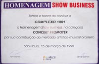 ABEPEM Prêmio entregue em São Paulo à Complexo 1001, por ser destaque entre a Classe Empresarial Artística e de Produção Musical. |